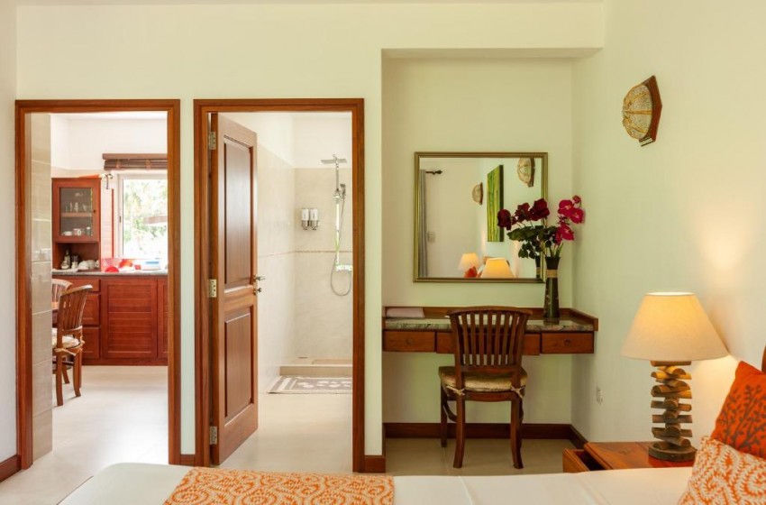 Located in Praslin, directly on sandy Grand Anse Beach, Le Tropique Villa features self-catering accommodations with free private parking. Praslin Airport is a 12-minute walk away. The holiday homes offer guests a fully equipped kitchen with an oven, stove, toaster, refrigerator, and kitchenware. Extra amenities include a dining area, a TV, air conditioning, and a bathroom with a shower and bidet. Some of the units have sea views while others have garden views. Guests can make use of the pedalo. Praslin National Park is 3.1 mi away, Praslin Ocean Farm and Aquarium is 1.2 mi away, and a number of restaurants and cafés can be reached within 1.9 mi of the property. Car hire facilities are available 300 m from Le Tropique Villa. Couples in particular like the location – they rated it 9.0 for a two-person trip. We speak your language!